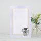 Stationery mit einer Illustration eines niedlichen grauen koala essen einige eukalyptus Blätter, mit einem schwarzen Graduierdeckel. Set auf einem leichten lila Aquarellhintergrund. Ein weißer, halbdurchsichtiger Rahmen mit einem goldenen Rahmen, der oben platziert ist, um leicht lesbar zu schreiben.