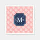 Niedliches Korallenmuster und blaues Monogramm Serviette