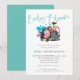 Niedliches Kuhschlafbaby in der Blütendusche. Bauernhofskultur und modernes informelles Set-Skript für Header Baby in Bloom. Gender neutral, mit aquamariner Typografie für die Position und koordinierende Farbe auf der anderen Seite. Sie können die Erholung des Textes ganz einfach an Ihre eigenen Anforderungen anpassen und die Hintergrundfarben ändern, wenn Sie es wünschen.