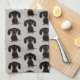 Niedliches kurzhaariges Schwarzes und Geschirrtuch