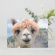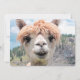 Ein Niedliches, lächelndes Alpaca-Fotografie-Bild. Das Gesicht ist beige, weiß und in den Farben Alpaca in der Nähe. Er hat ein Lächeln für seine Nähe. Die Alpaka ähnelt dem Lama und wird oft mit ihm verwechselt. Ein schönes, gezähmtes Foto eines Tieres, das für Sie bereit ist, Ihren eigenen Text auf der Rückseite hinzuzufügen.