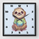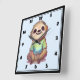 Eine Uhr mit einer anmutigen Abbildung mit einem fröhlich aussehenden Faultier mit einem grünen T - Shirt. In einer entspannten Pose sitzend querbeinig sitzen.