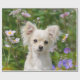 Ein junges, langhaariger, weißer Chihuahua-Hund, der in einem blühenden Garten sitzt, Foto von Katho Menden. Dieses Packpapier ist eine Geschenkidee für Hundeliebhaber. http://www.zazzle.com/kathom_photo Wenn Sie ein Design sehen, das nicht auf Ihrem gewünschten Produkt erhältlich ist, zögern Sie bitte nicht, mich über meinen Shop zu kontaktieren und ich werde Ihnen gerne das Produkt für Sie erstellen.