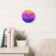 Niedliches, lebhaftes Design Blau Rosa Gelb Runde Wanduhr