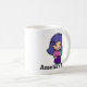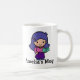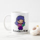Niedliches Lehrermädchen mit Rechtschreibbuch Kaffeetasse