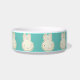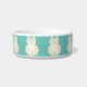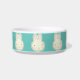 Niedliche aquamarine Creme Hasen Cartoon Illustration Muster Keramik Schüssel. Helle Creme Pastellbüschen mit rosafarbenen Ohren auf aquamarinem Hintergrund. Diese Schüsseln sind großartige Geschenke für Babys und Kinder.