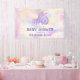 Adorable lila und rosa Babydrache schlafen friedlich umgeben von Sternen auf diesem niedlichen individualisierbaren Babyduschbanner. Ideal für eine drachenbezogene Babydusche oder eine fantasy-bezogene Babydusche für ein kleines Mädchen.