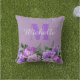 Niedliche und mädchenhaft lila Vintage Blumen-und silberne Glitzer maßgeschneiderte Außendekorator Kissen. Personalisiert mit Ihrem Monogramm/Initial und Ihrem Vornamen in einem eleganten Script-Schriftart. Ideal für die Dekoration Ihrer Veranda oder Patio-Möbel.