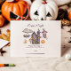 Dieses hübsche Halloween-Babyduschdesign mit handgemalten lila Hexen, Kürbissen und einem gemütlichen Spuk Haus. Ideal für eine Herbstfeier mit einer skurrilen, sanften Ästhetik. Eine tolle Wahl für Eltern, die ein angenehmes Halloween-Liebe und einen spielerischen Cottcore-Charme haben.