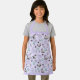 Diese Niedliche Lila Happy Oaster Bunny and Egg Schürze Muster Schürze für ein Mädchen bietet handgezeichnet Illustrationen in schwarzer Tinte von Bundnies, Blätter und Blume an einem weichen pastellfarbenen lila Hintergrund skallopierte Kanten und passende lila Streifen. Personalisieren Sie mit dem Namen, der im gesamten Muster unten "Happy Oaster" erscheint. Ideal für Osterfeiern, Ostereierjagden, Osterarbeiten und Backen mit Familie und Freunden.