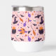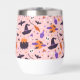 Dieses Design zeigt ein skurriles und lebendiges Halloween-Muster mit einem spielerischen Farbschema. Das Design ist mit einem weichen rosa Hintergrund, der mit einer Reihe klassischer Halloween-Symbole geschmückt ist, ausgestattet. Unter ihnen sind Hexenhüte, Kaulquappen, die mit Tränen sprudeln, fliegende Fledermäuse, Schädel, Broomsticks und Flaschen Tränke. Es gibt auch Elemente wie Pilze, Sterne, halbmondfarbene Monde und Wolken, die alle in einer Palette von reichhaltigen Püppchen, Orangen und Schwarzen dargestellt werden. Das Gesamtbild ist ein lustiges und festliches Muster, das den spukhaften, aber leicht gemachten Halloween-Geist einfängt, perfekt für Dekorationen, Kostüme oder Party.