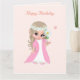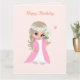 Niedliches Mädchen auf hellrosa Geburtstagskarte Karte