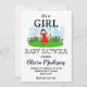 Niedliches Mädchen im Blumengarten Babydusche Einladung