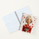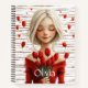 Niedliches Mädchen in rotem Kleid mit Tulpen Notizbuch