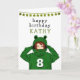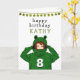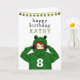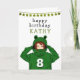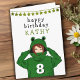 Niedliches Mädchen mit Green Frog Hoody Zeichnend Geburtskarte. Ein niedlicher zeichn eines Mädchens mit einem grünen Froschschwanz. Spaß Design für ein Mädchen mit grünen Glitzer Sternen. Geben Sie Ihren Namen, Ihr Alter und Ihren Text hinein.