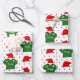 Niedliches Mädchen mit Grünen Weihnachtsmannmütze Geschenkpapier Set