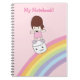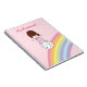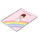 Niedliches Mädchen surft Regenbogen auf Notizblock