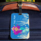 Niedliche, maßgeschneiderte Gepäckmarke mit einem hübschen, lila haarigen Hispanic-Mädchen mit einem coolen aquamarinen Schwanz, das in der Nähe der wunderschönen Koralle im Ozean schwimmt. Cooles Sommergeburtsgeschenk für ein Party- oder Strandmädchen.