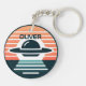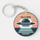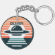 Personalisierter Schlüsselanhänger mit einem niedlichen modernen und minimalistischen UFO bei Sonnenuntergang.