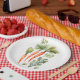 Diese niedlichen Aquarellpapier-Teller mit einem Essmuster mit orangefarbenen Karotten und grünen Blätter sind perfekt für gesunde Ernährung | Osterveganes Party!