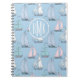 Niedliches Monogramm des Segelboot-Muster-| Notizblock