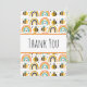 Vielen Dank Karte mit einem niedlichen gemusterten Hintergrund. Weiße Bienen und Regenbogen mit kleinen Herzen und Sternen verstreut herum. Schön und angenehm.