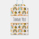 Vielen Dank Geschenketiketten mit einem niedlichen gemusterten Hintergrund. Weiße Bienen und Regenbogen mit kleinen Herzen und Sternen verstreut herum. Schön und angenehm.