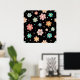 Niedliches Muster für mehrfarbige Blume auf schwar Poster