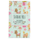Ein Dankeschön Geschenksack mit einem skurrilen Muster mit einer Sammlung von köstlichen Kinderspielzeug und Tieren.