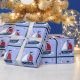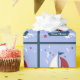 Ein grafisches Design von Segelbooten, Delphinen und Möwen auf Packpapier. Die Geschenkpackung hat eine Vorlage für Ihre Personalisierung. Entworfen von Charmaine Paulson