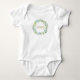 Das ist ein eleganter, wasserfarbener, eukalyptusblättriger Anzug. Machen Sie es zu Ihrem eigenen, indem Sie es mit dem Namen Ihres Kindes und dem Geburtsdatum im Kranz personalisieren.