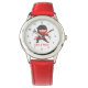 Kinderuhr aus Edelstahl mit rotem Lederarmband