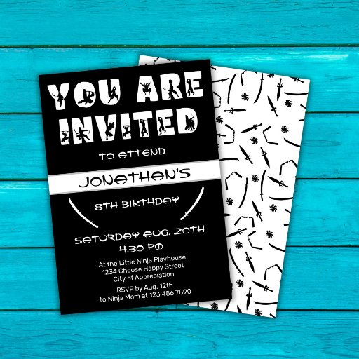 Ninja Birthday Black and White Silhouette Designt von Mae .