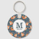 Niedliches Orange Fox Tiermuster Monogramm Schlüsselanhänger
