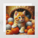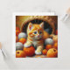 Das kleine, orange gestreifte Kätzchen spielt in einem Korb aus orangefarbenen und weißen Garnbällen.