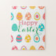 Moderner Text in Rosa und Grün mit Ostereimuster.