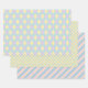 Feiern Sie Frühling und Ostern mit diesem niedlichen Osterverpackungspapier Set: 1. Raute Muster mit türkisfarbenen, lila und gelben Diamanten mit weißen gepunkteten Linien. 2. Türkisfarbene Punkte auf gelbem Hintergrund. 3. Diagonale Streifen mit gelben, rosa, lila, türkisfarbenen und türkisfarbenen Farbtönen. Alle 3 sind farbkoordiniert. So bezaubernd und sehr vielseitig für jede Osterfeier oder New Baby, Baby Dusche, Kindergeburtstag...