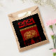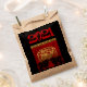 In einem Quadrat sind 2 schwarze Oxen, platziert unter einer goldenen Form innen ist der dritte Ochse mit Ideogramm. Hinter der Szene befindet sich ein roter Hintergrund, auf dem dekorative und verzierte Buchstaben die Wörter OX YEAR bilden. Design auf Kraftanziehen Tasche mit großem 2021 auf schwarzem Hintergrund. Matching Grußkarte, Urlaub Postkarte und mehr... Ideal für Chinesisches Neujahr des OX 2021 oder Geburtstag (Menschen im Ox Jahr geboren).