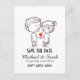 Niedliches Paar, das Save the Date Hochzeit Zeichn Postkarte