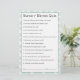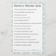 Eine niedliche Idee als Baby-Duschspiel, dieses Frage- und Antwortspiel bietet viele geliebte Kinderzimmer-Rhyme-Fragen. Jeder Gast bekommt ein Spielblatt und füllt seine Antworten aus. Sobald alle ihre Antworten beantwortet haben, ruft der Host- oder Gamealler die Fragen heraus und gibt die richtigen Antworten. Der Gast mit den besten Antworten gewinnt einen Preis! Dieses Design hat einen hübschen Panda-Bär auf der Rückseite der Spielekarte und verwendet das koordinierende Thema Aqua und Elfenbeinbeige, um eine Sammlung von Babyduschprodukten in diesem niedlichen geschlechtsneutralen Thema zu ergänzen. Hier sind die Antworten auf die Fragen auf der Spielkarte: 1. Weihnachtskuchen 2. vierundzwanzig. 3. ein Stück Paprikaschoten in der Kiste. 4. Metzger, Bäcker, Kerzenmacher. 5. voller Anmut. 6. ein Pony. 7. um ein Stück Wasser zu holen. 8. küsste sie. 9. die Ehefrau des Bauern. 10. einen Knochen. 11. sein Abendessen. 12. ein Pieman. 13. silberne Glocken, Kokelräder, hübsche Dienstmädchen in Folge. 14. ein Schwein