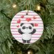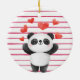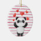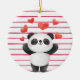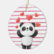 Unglaublich niedlicher Panda, der Herzen über ihrem Kopfdesign hält. Der Hintergrund ist rot-weiß gestrichen.