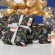 Niedliches Panda Winter Urlaubsmuster Verpackungspapier. Niedliche Kawaii Panda mit weißem Schal und winterbotanischen Mustern.