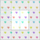Ein niedliches und trendiges Herzenmuster in einem Regenbogen in hellen Pastellfarben. Die Leinwand wird von hellen Pink-, Aquas-, Blues-, Purpur- und Orangetönen geschmückt.
