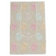 Eine niedliche Geschenktasche mit pastellrosa, grünen und gelben Eiern auf beigem Hintergrund. Perfekt für die stilvolle Gestaltung Ihrer Osterpressen.