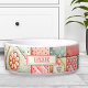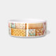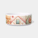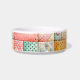 Niedliche Patchwork / Quilt Stil Haustierschüssel mit einer niedlichen Katze und Haus in einem schönen Vintagen Stil und Pastellfarben. Kate Eden Art