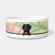 niedliches Pinkeln, schwarzes Labrador Essen oder Wasserschüssel.