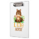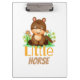 Niedliches kleines braunes Pferd mit grünem Gras, Blume und Text LITTLE HORSE
