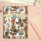 Niedliches personalisiertes Notizbuch mit magischen Illustrationen von kleinen Hütten, die auf niedlichen Pilzen in Rot und Pfirsichfarben, umgeben von Schmetterlingen, Blume und Grünpflanzen stehen.