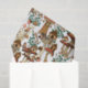 Niedliches Papiertaschentuch mit magischen Illustrationen von kleinen Hütten, die auf niedlichen Pilzen in Rot und Pfirsichfarben geklebt sind und von Schmetterlingen, Blume und Grünpflanzen umgeben sind.