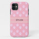 Trendy niedliches Pfotenmuster und bearbeitbarer Text auf rosa Hintergrund iPhone 11 Case.